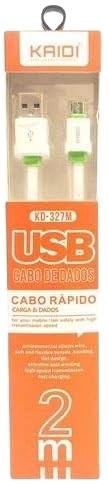 Apresentamos o cabo de dados Kaidi KD-327M de 2 metro de comprimento total. Este cabo possui um conector USB de alta qualidade reforçado para aumentar o seu tempo de uso útil. Além disso possui um belo design diferenciando dos demais cabos simples